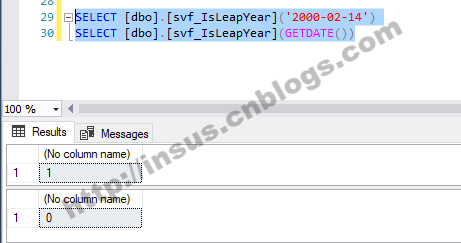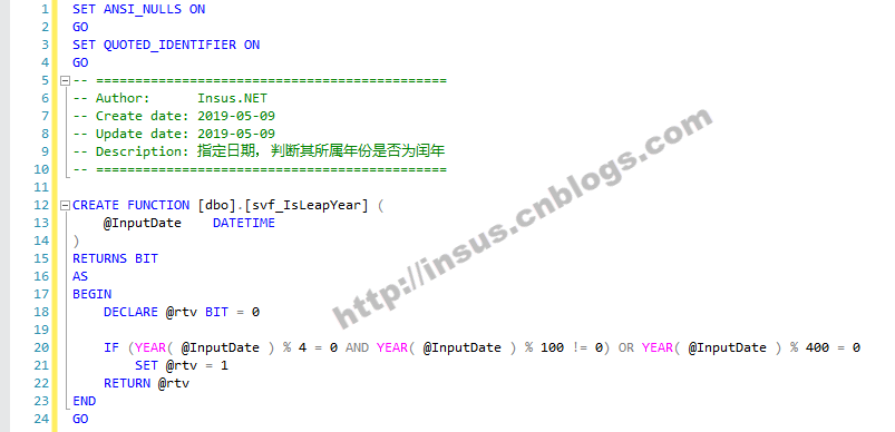 很早以前,写过一个函数,是获取二月份的天数。《T-SQL获取二月份天数》https://www.cnblogs.com/insus/archive/2011/04/22/2025019.html 其中这个函数内就此相关的判断: