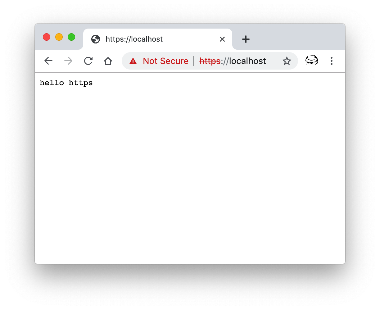 然后访问 localhost。 本地访问 https 的效果 因为是本地自签名证书的原因,并没有三方机构的认证,所以浏览器会有红色的警告。 相关资源 |