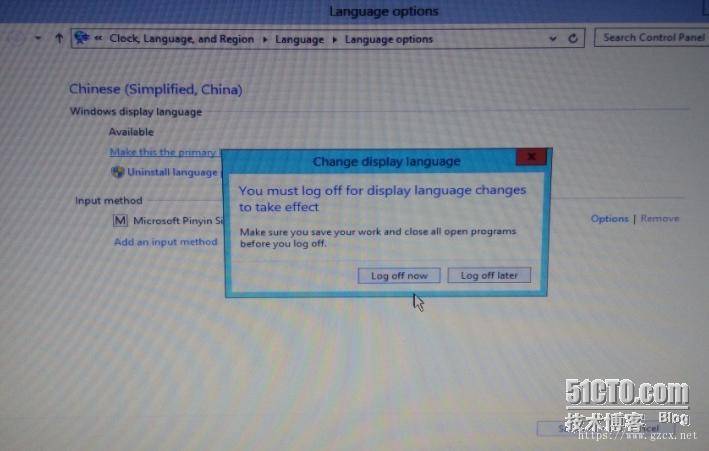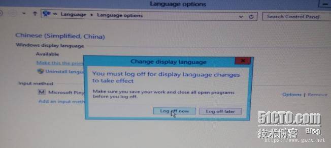 这里提示在注销重新登陆后,就可以看到中文界面了,选择“log off now”