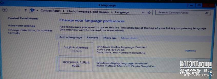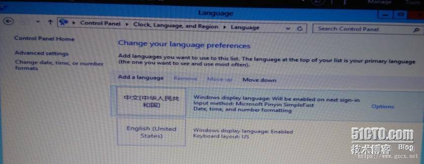 选择Control Panel >> Clock,Language,andRegoin >> region and Language