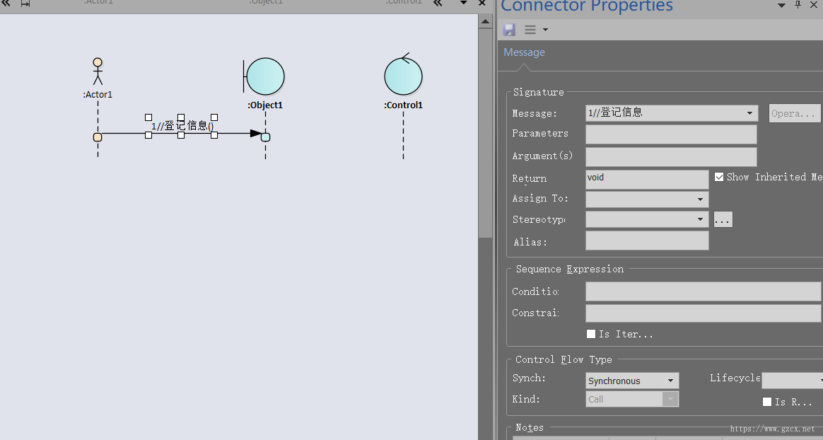 如果是返回的消息,将is return勾选,自动改成虚线