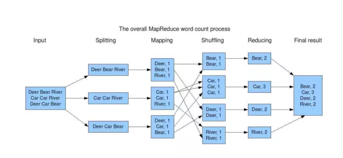 紧随其后的就是2004年公布的 MapReduce论文,论文描述了大数据的分布式计算方式,主要思想是将任务分解然后在多台处理能力较弱的计算节点中同时处理,然后将结果合并从而完成大数据处理。