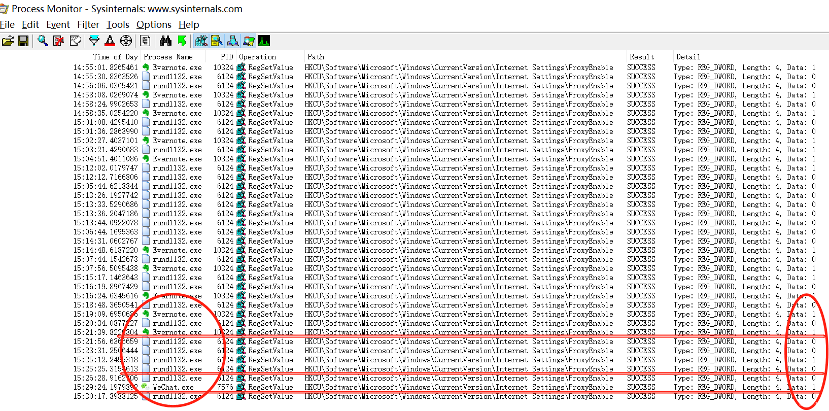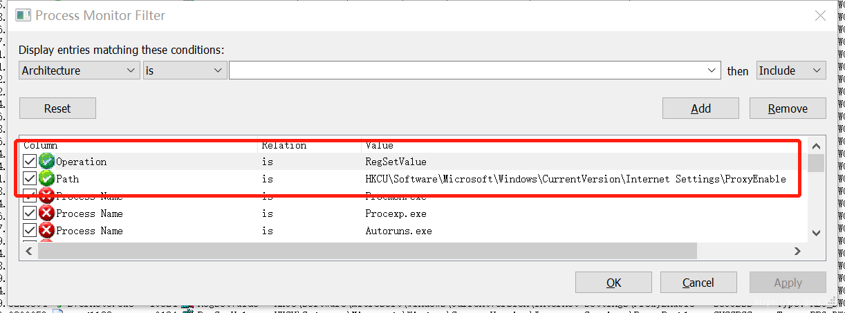 用Process Monitor 监测注册表解决win10代理服务器关不掉自动被勾选的问题